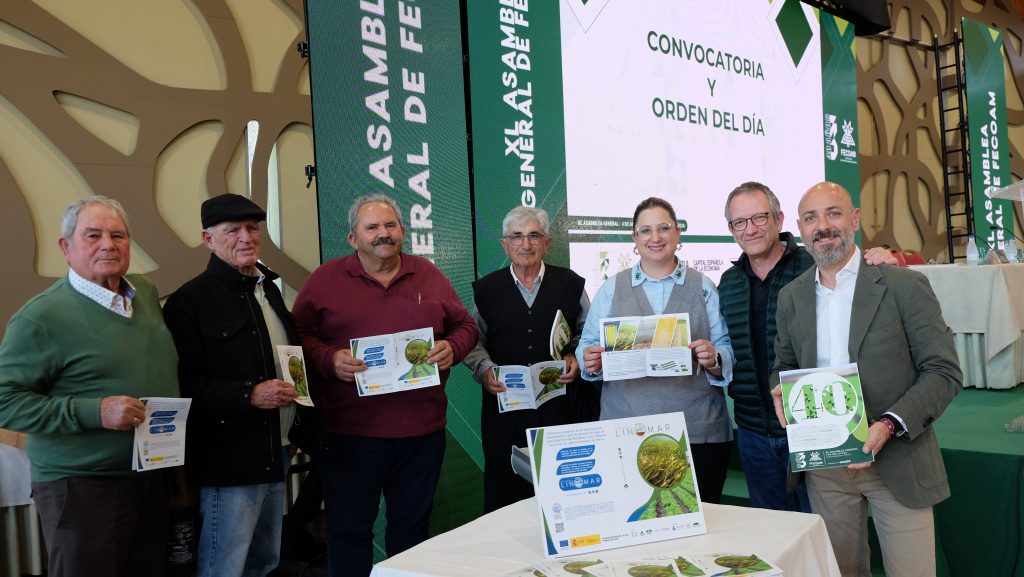 Todos los componentes del Grupo Operativo Linomar, incluyendo los técnicos de Fecoam, así como los productores y agricultores que colaboran con las parcelas, acudieron a la XL Asamblea General de Fecoam. Allí pudieron mostrar y entregar a las más de 500 personas que acudieron, incluyendo cooperativistas agroalimentarios, medios de comunicación y representantes institucionales, los materiales de difusión del proyecto, explicando los objetivos y avances de Linomar.